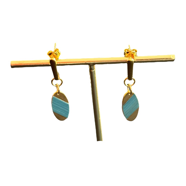 EVASION et RAFFINEMENT pour ces boucles d'oreilles Or et Turquoise comme l'eau des Caraïbes .